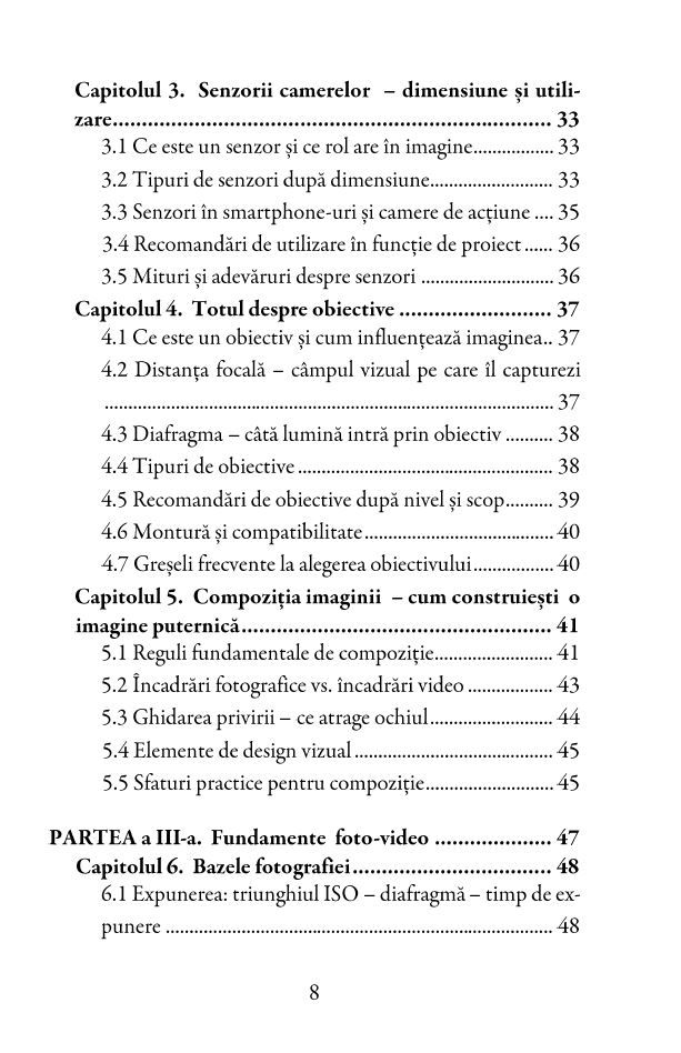 Ghid practic de fotografie și videografie – carte esențială pentru începători și pasionați. Descoperă tehnici simple și eficiente pentru a realiza fotografii și videoclipuri de calitate, folosește sfaturi utile pentru captarea perfectă a momentelor speciale și îmbunătățește-ți abilitățile de creație vizuală. Perfect pentru cei care vor să înțeleagă tainele fotografiei și videografiei și să-și exprime creativitatea prin imagini și clipuri.